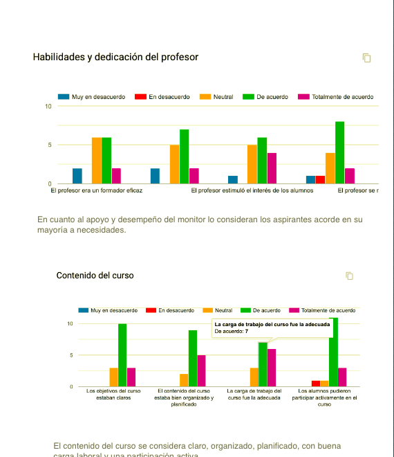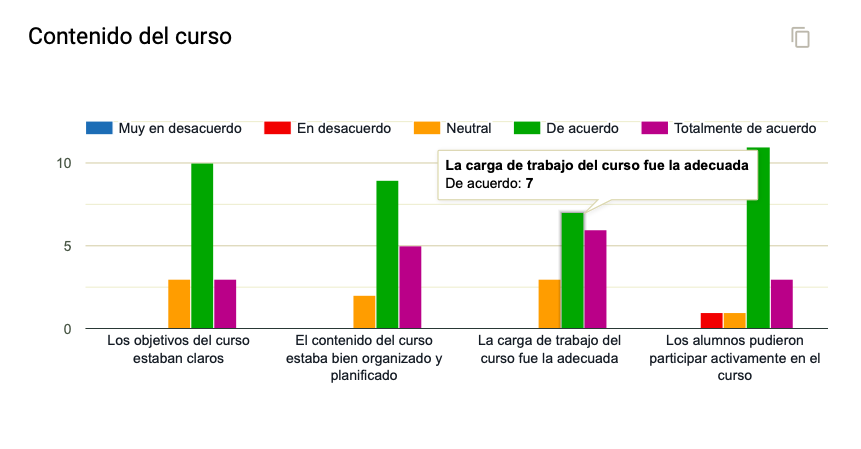 El contenido del curso se considera claro, organizado, planificado, con buena carga laboral y una participación activa.