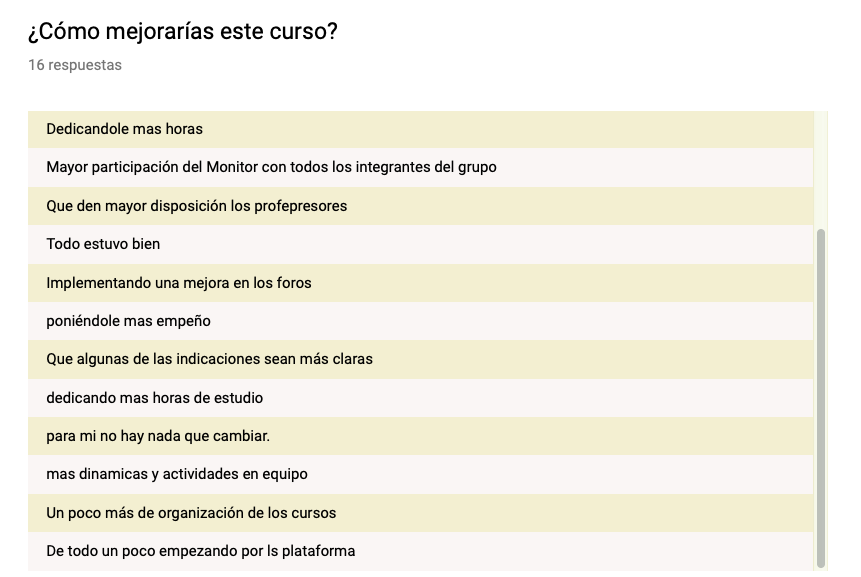 Consideran importante mas participación de los profesores mostrando generar un mayor compromiso como alumno.