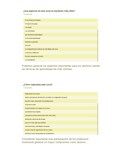 Podemos apreciar los aspectos importantes para los alumnos siendo las técnicas de aprendizaje las mas notorias.